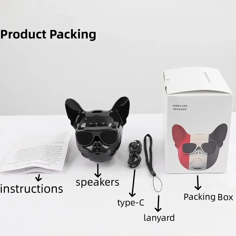 Bluetooth 5.0 :Enjoy seamless connectivity with the latest Bluetooth 5.0 technology, ensuring stable and fast transmission of audio signals. Portable Design :Take your music anywhere with this lightweight and compact speaker, perfect for outdoor activities or on-the-go use. Creative French Bulldog Design :Add a touch of fun and personality to your audio experience with the unique French Bulldog design, sure to stand out from the crowd. Extra Bass Mode :Enhance your listening experience with the extra bass mode, delivering powerful and immersive sound quality.
