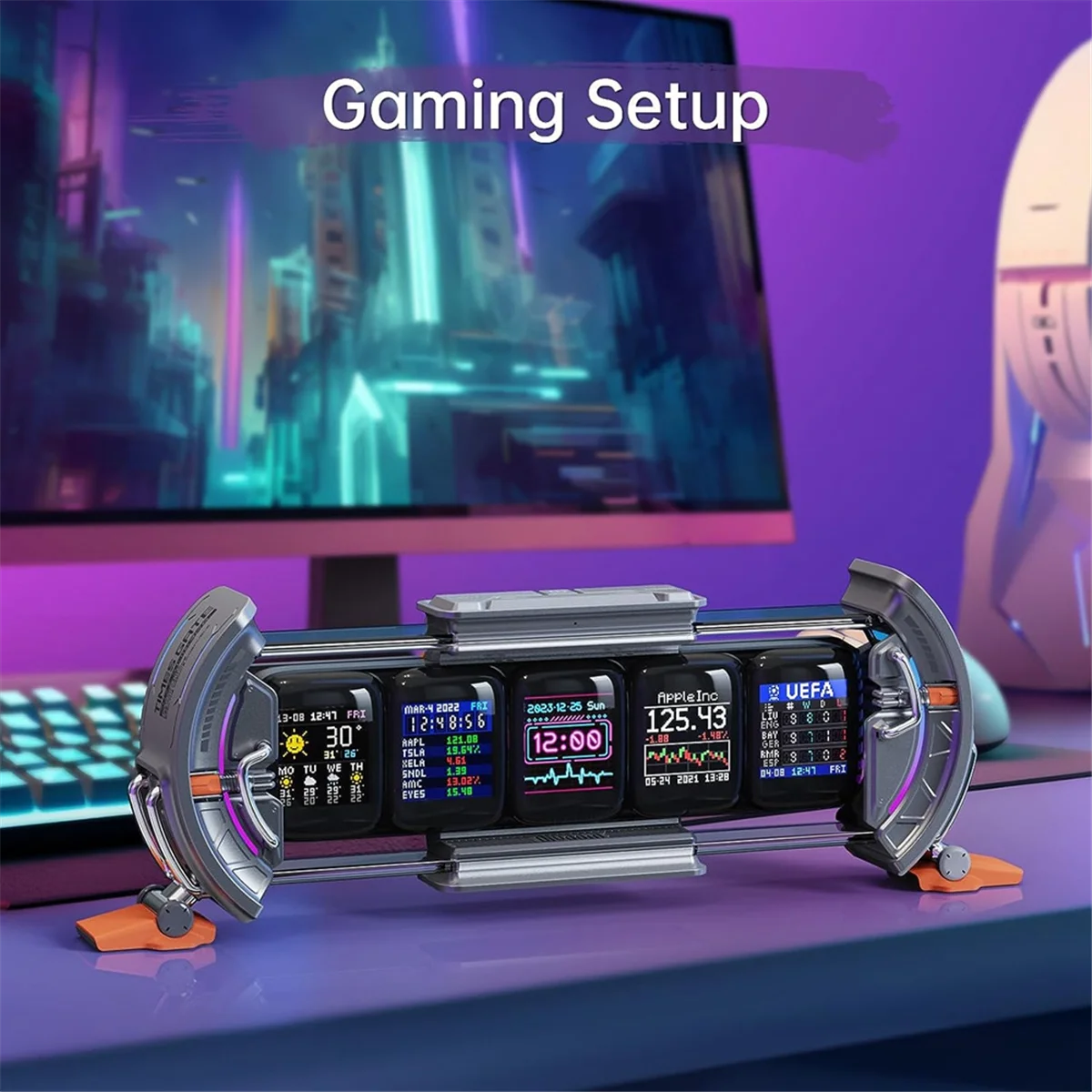 [Times Gate] Gate Digital Clock draws inspiration from the realm of technology, It transcends being a mere digital clock; it is a magnificent tapestry interwoven with light, shadow, and expression. featuring five full-color LCD displays, with dazzling 128×128 pixel art and lively animated GIFs, brings a unique visual extravaganza to your gaming room, office.